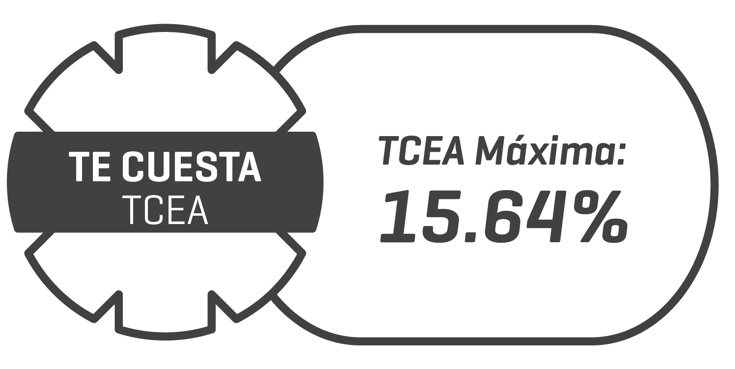 TCEA máxima referencial 15.64% calculada considerando una TEA máxima de 14% aplicable a un Crédito Hipotecario MIVIVIENDA de S/120,000.00 a 15 años, intereses totales de S/159,796.09, cuota mensual de S/1,650.67 que incluye el seguro de desgravamen saldo mensual (individual) de 0.047% sobre el saldo pendiente de la deuda y el seguro todo riesgo mensual de 0.0308% (S/48.22), conforme al tarifario vigente. Año base 360 días. ITF 0.005% aplicable sobre el importe de desembolso y cualquier pago que efectúe el cliente. Opcional: Seguro de Desgravamen con Devolución Individual es 0.269%, aplicable para préstamos de 25 meses a más. Crédito Hipotecario Mivivienda sujeto a evolución crediticia de la(s) persona(s) evaluada(s) de forma individual o mancomunada.